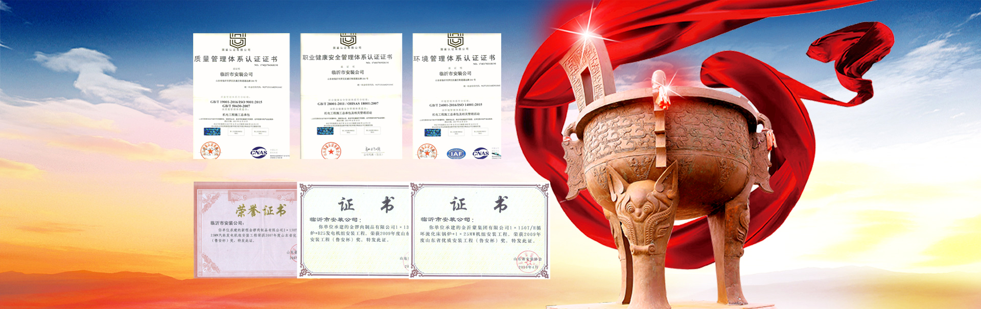 山東臨安建設(shè)有限公司(原名臨沂市安裝公司)始建于一九六六年,是由老國(guó)企改制的股份制企業(yè),公司總部位于羅莊區(qū)通達(dá)路211號(hào),現(xiàn)有職工1000余名,各類(lèi)工程經(jīng)濟(jì)技術(shù)人員816名,其中高中級(jí)職稱(chēng)64名,初級(jí)職稱(chēng)204人。主要從事機(jī)電工程施工總承包,電力施工總承包,石油化工施工總承包,建筑裝飾裝修施工總承包,鍋爐安裝、改造I級(jí)(參數(shù)不限),GB1、GB2(2)級(jí)、GC1級(jí)、GD1級(jí)壓力管道安裝,起重機(jī)械B級(jí)安裝,電力設(shè)施承裝、承試,并取得了GB/T19001-2008質(zhì)量管理體系認(rèn)證證書(shū)、GB/T28001-2011職業(yè)健康安全管理體系認(rèn)證證書(shū)、GB/T24001-2004環(huán)境管理體系認(rèn)證證書(shū),資信等級(jí)“AAA”級(jí)。